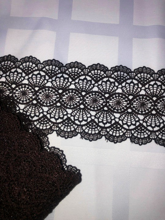 Широкое плетёное кружево придаёт вещам особый шик и нежность. Оно станет идеальным дополнением для декора одежды, постельного белья и предметов интерьера.