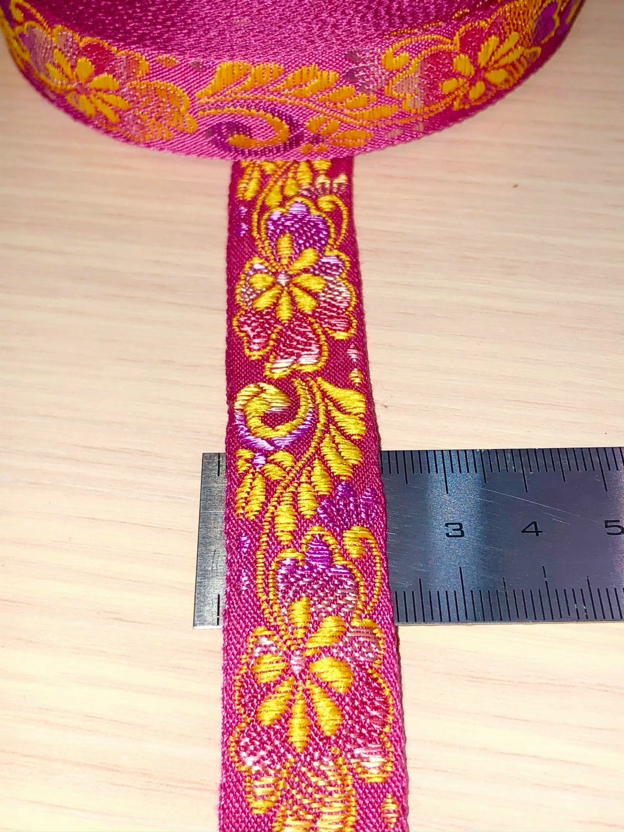 Изящная тесьма высокого качества из прочного жаккарда шириной 25 мм. Прекрасно подчеркивает детали народного костюма, делая его нарядным и праздничным.